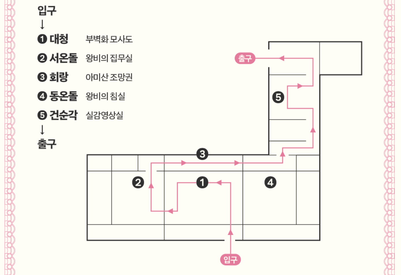 교태전 내부관람은 아래의 경로에 따라 진행됩니다.