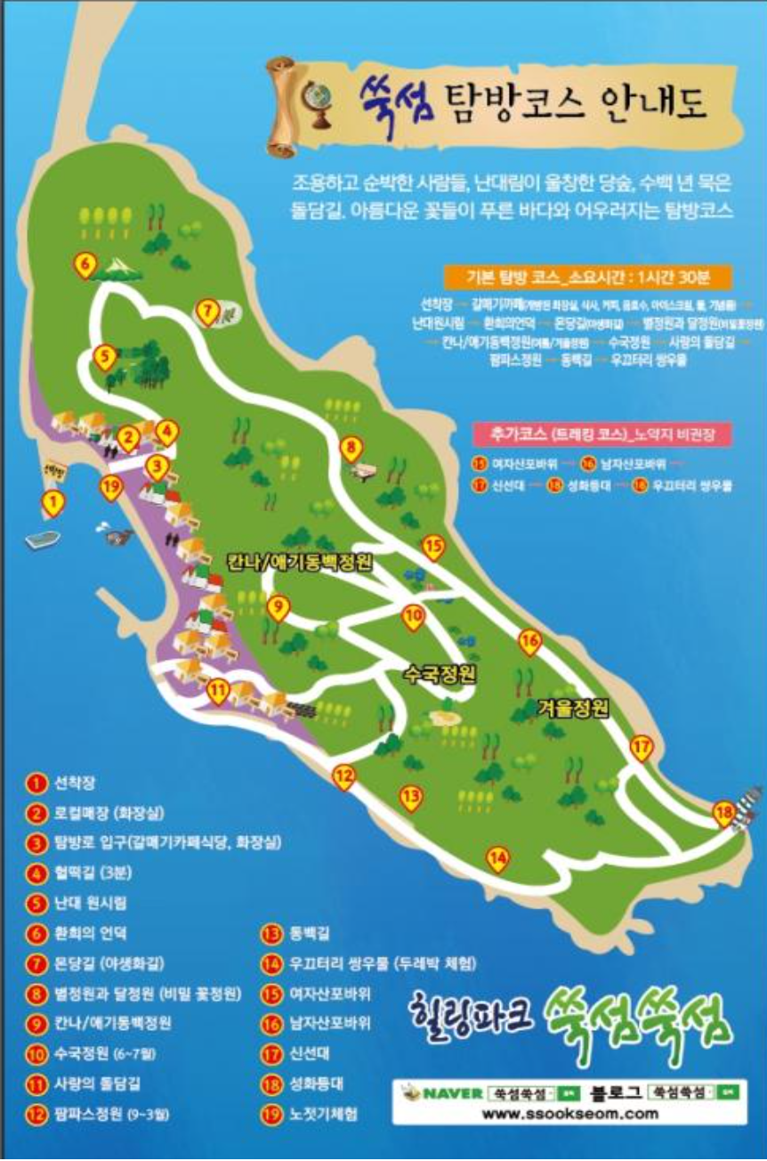 - 배편 운항 : 2025년 5월부터 기존 1척에서 2척으로 확대 운항 중, 정원 14명 규모의 쑥섬 1호와 2호가 번갈아 운항하여 대기시간 최소화했습니다. 6월~7월은 수국개화시기로 미리 선편을 예매하시는 걸 추천드립니다.