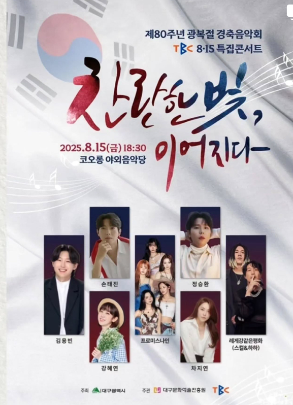 2025년 8월 15일(금) 대구에서는 제80주년 광복절 경축 음악회가 개최됩니다. 이 음악회는 대한민국의 광복을 기념하며 시민과 함께 자유와 평화의 소중함을 되새기는 의미 있는 행사로, 대구 두류공원 코오롱 야외음악당에서 오후 6시 30분부터 약 2시간 동안 펼쳐질 예정입니다. 특히 이번 경축음악제에는 손태진, 그리고 최근 미스터트롯 3으로 인기몰이중에 있는 김용빈 가수의 공연이 예정되어 있어 더욱 많은 관심을 모으고 있습니다. 그럼, 좀 더 자세한 정보 가시죠~