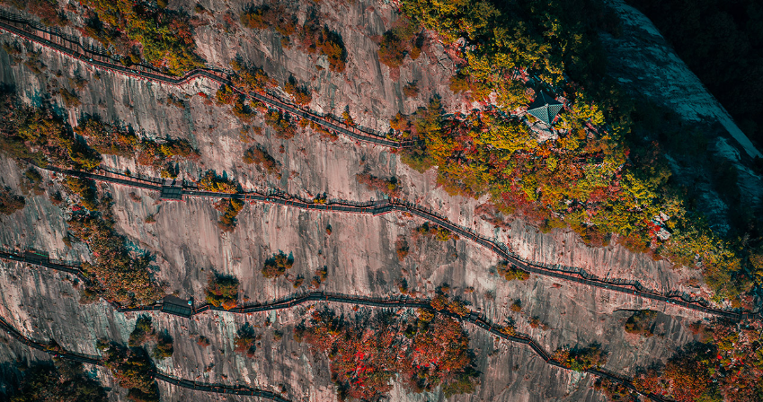 단풍이 암벽을 붉게 물들이며 하늘길 아래 물안개가 피어오르는 최고의 계절. 이 때 방문하면 평생 기억에 남습니다.