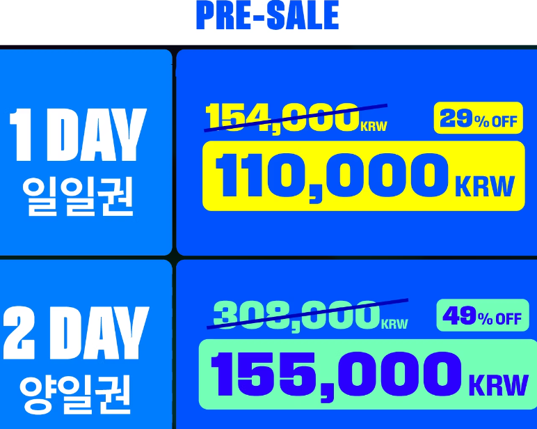 - 프리세일 티켓 : 1일권 110,000원 / 양일권 155,000원