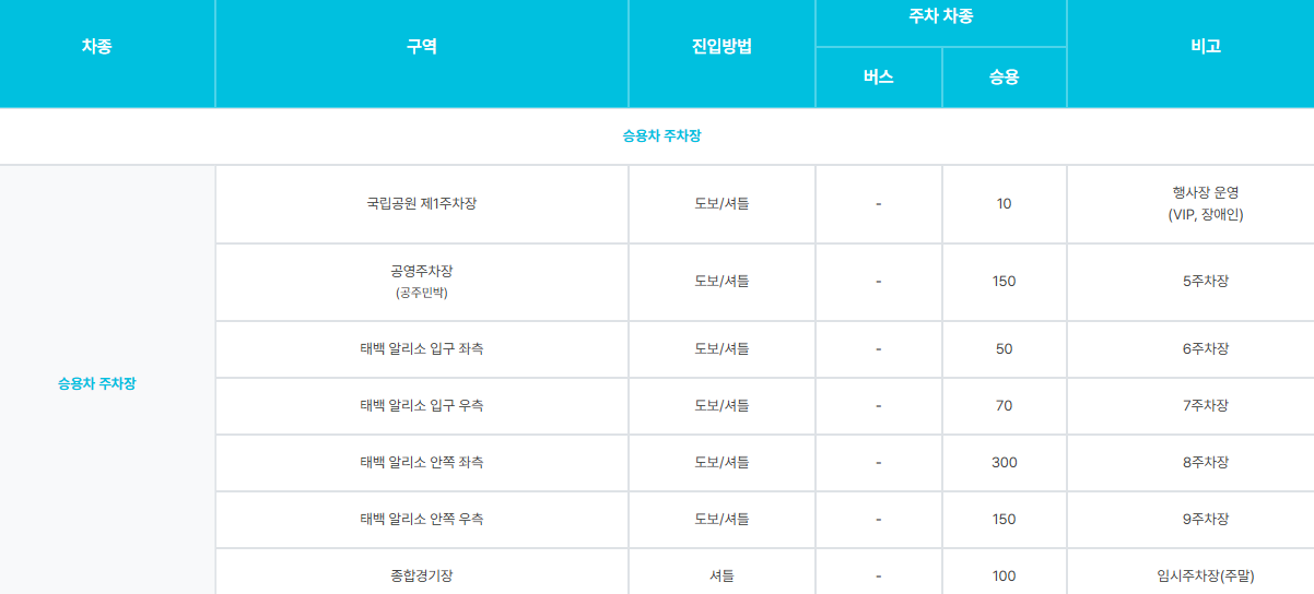 - 시내버스 : 주요 노선 7번 버스 ➡ 당골 태백산 국립공원 정류장 하차