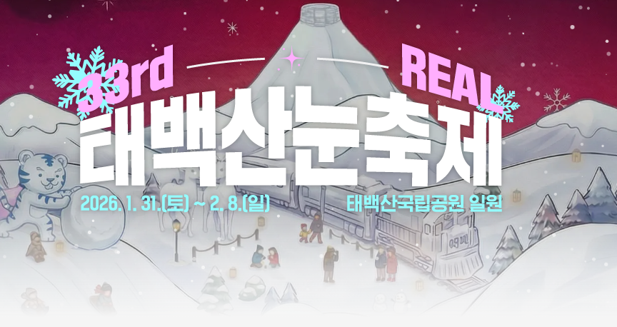 2026년 제33회 태백산 눈축제는 '2026 REAL 태백산 눈축제'를 슬로건으로, 태백의 설경과 K-콘텐츠를 결합한 눈·얼음·조명 축제입니다. 태백산국립공원 당골광장과 태백 시내 일부 구간이 거대한 야외 설원 포토존으로 변신해, 가족·커플·사진러 모두에게 인기 있는 최고의 겨울 여행지로 꼽히는 태백산 눈축제입니다.