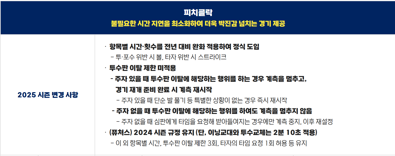 KBO 피치클락 규칙 상세정보