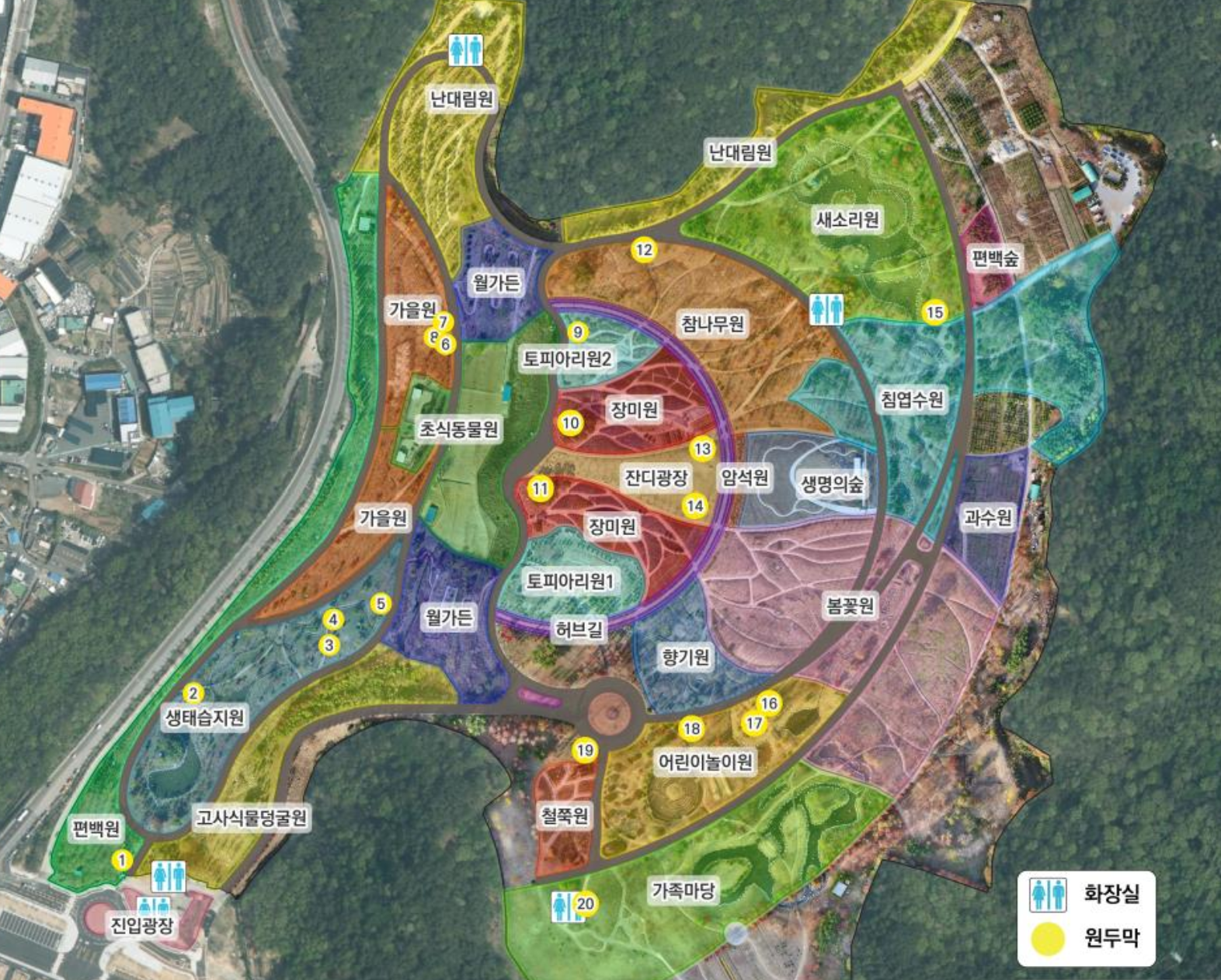 수목원 내에는 화장실, 원두막, 피크닉 테이블, 벤치 등이 잘 마련되어 있어 가족 단위로 방문하는 분들이 많습니다. 방문객은 수목원 내 금연·금주를 준수해야 하며, 반려동물 출입은 제한됩니다. 자전거, 킥보드 등은 반입 불가이니 참고하시기 바랍니다.