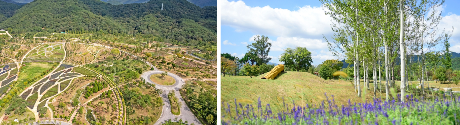- 로즈 마리, 배초향등의 허브류를 모아 심은 허브길과 잎이 뾰족한 침엽수 나무들로 구성된 침엽수원은 사계절 푸른 감성을 제공합니다.