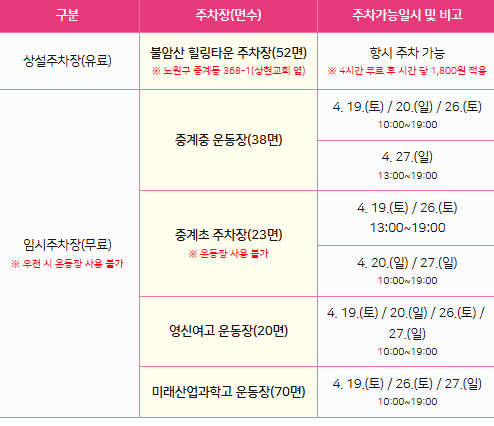 주차장 : 상설주차장 - 불암산 힐링타운 주차장