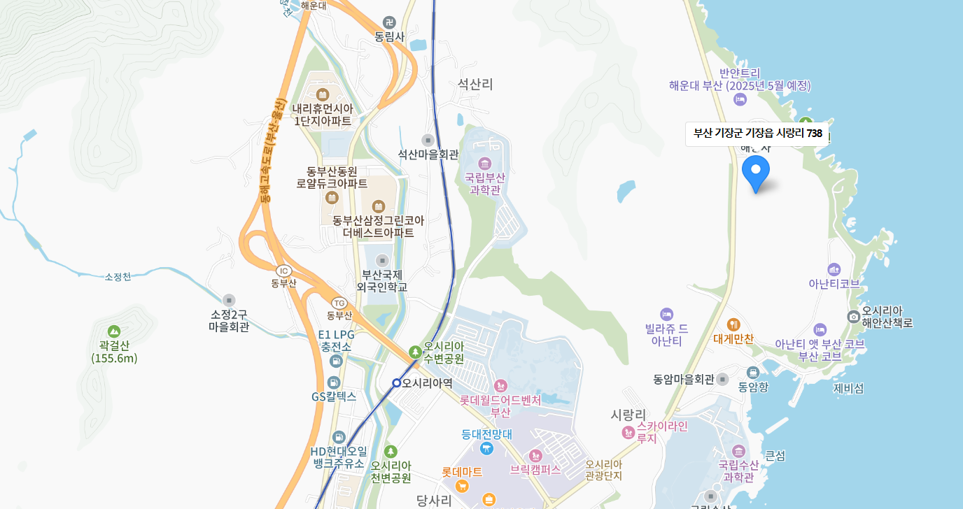 주소 : 부산광역시 기장군 기장읍 시랑리 738,749번지