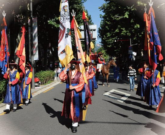 - 수천 명의 행렬단과 전통 복식