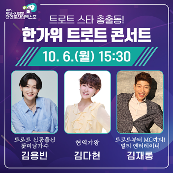 물 맑고 공기 좋은 충북 제천에서 2025년 10월 6일, 가을 정취를 가득 담은 특별한 음악 축제가 펼쳐집니다. 바로 제천 한가위 콘서트! 이번 공연은 제천국제한방천연물산업엑스포의 일환으로 진행되며, 트로트 팬이라면 절대 놓칠 수 없는 라인업과 감성 충만한 무대가 준비되어 있습니다. 가족, 친구, 연인과 함께 즐기기 딱 좋은 이 콘서트에 대한 모든 정보를 하나하나 살펴보도록 할게요.