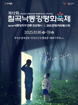 2025년 10월 16일부터 19일까지 경상북도 칠곡군 칠곡보생태공원 및 왜관 시가지 일원에서 열리는 칠곡 낙동강평화축제는 평화와 화합, 활력을 주제로 한 가을 대표 축제입니다. 한국전쟁 당시 낙동강 전투 지역인 칠곡에서 벌어진 평화를 기념하고 나라를 지킨 호국영웅들과 역사를 되새기는 뜻깊은 행사로, 누구나 무료로 관람할 수 있으며 군문화공연, 개막축하공연, 어린이 뮤지컬, 그리고 "미스터트롯 3 top7 콘서트"등이 진행되어 방문객들에게 풍성한 볼거리를 제공합니다.