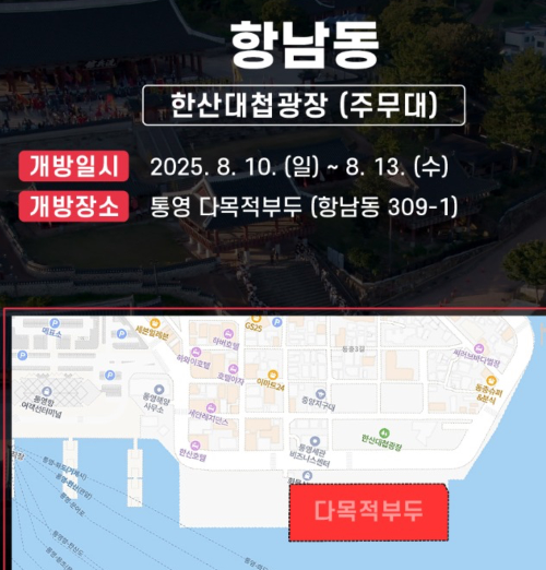 - 장소: 경상남도 통영시 통영해안로 267, 통영한산대첩광장 (항남동)