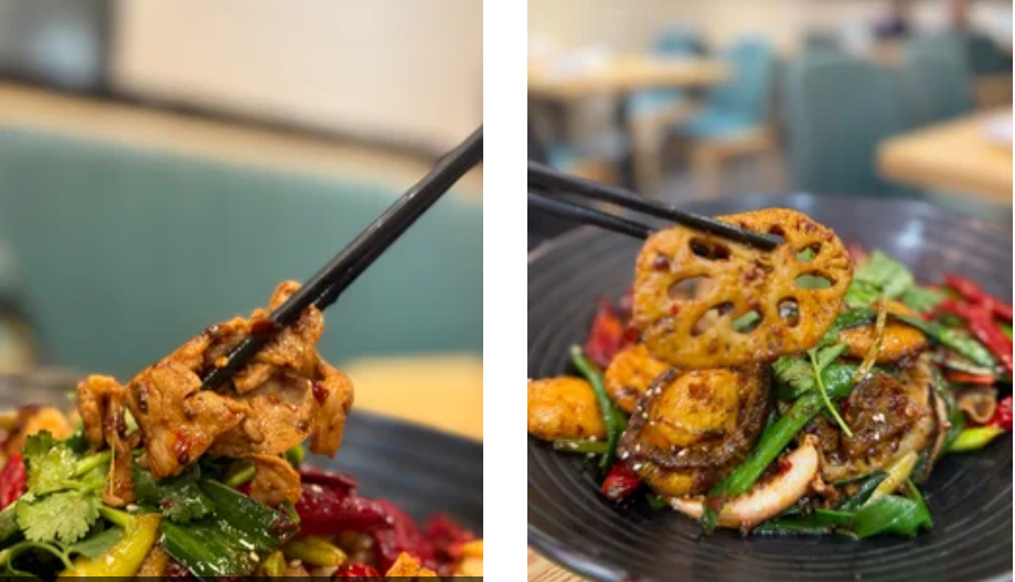 가장 가성비 좋은 곳이 이곳인데요, 위치는 잘 아시는 몽콕역에서 3분 거리에 있는 아주 대중적인 식당입니다. 규모도 작고 영어도 잘 안 통하는 곳이지만 음식맛은 아주 훌륭합니다, 이 식당에서 제가 가장 좋아하는 메뉴는 마리어피 / 麻辣鱼皮 라는 음식인데요 한자에서 보듯이 생선의 껍질을 마라맛으로 요리한 건데요, 생선껍질이라니 너무 비리거나 식감에서 거부감이 들지 않을까 우려되실 텐데요, 비린맛은 당연히 전혀 없고요, 생선껍질이 정말 쫄깃쫄깃하고 거기에 마라맛 양념이 배어서 정말 맛있어요, 생선 좋아하시는 분이라면 꼭 도전해 보시기 바랍니다. 그다음 꼭 시켜야 하는 메뉴는 口水鶏 라는 닭요리입니다, 닭고기를 마라 양념으로 조리한 요리인데 매번 먹을 때마다 어떻게 하면 닭이 이렇게 부드럽고 야들야들한 식감으로 만들까 의문이 들어요, 뭔가 우리나라 닭과는 다른 정말 부드럽고 닭의 풍미가 진한 요리예요.